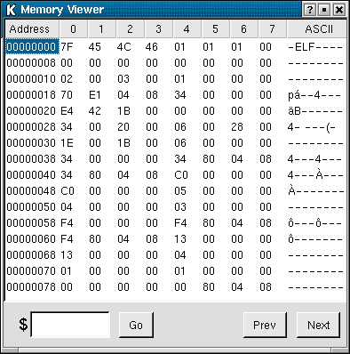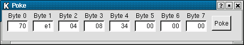The memory viewer enables the entire contents of the defined memory region to be displayed, either page by page, or to jump to a specific hex location. Values are displayed as hex bytes and these can be altered by simply double-clicking on the relevant byte to bring up the "poke" window.